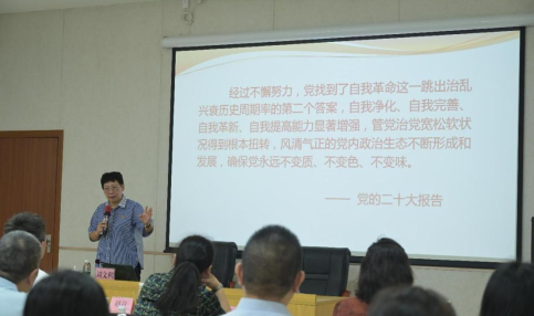 7月11日下午由中共丹灶镇委党校首席顾问、副教授刘文利作《利剑高悬 全面从严治党永远在路上》党纪教育学习专题授课。刘教授从我党的发展历史及现状,从宏观及微观方面总结了目前存在的四大考验及四大危险,而我党为何一直保持优秀,最关键的就是始终保持自我革命的精神。习近平总书记总结中国共产党跳出历史周期律的两个法宝是让人民来监督政府和革命者必须先自我革命。中国共产党就是通过这两个法宝来不断的自我完善和自我纠正,以解决大党独有的难题。刘教授带领学员们观看了警示教育片《持续发力 纵深推进》。通过观看警示教育片,告诫党员干部要以案为戒,树立正确权力观、政绩观、事业观,筑牢拒腐防变思想防线,增强纪律意识、规矩意识,真正做到心有所畏、言有所戒、行有所止。刘教授还对《条例》中新增和修订的内容进行了逐一解析,让学员们对《条例》有了更深刻的认识。