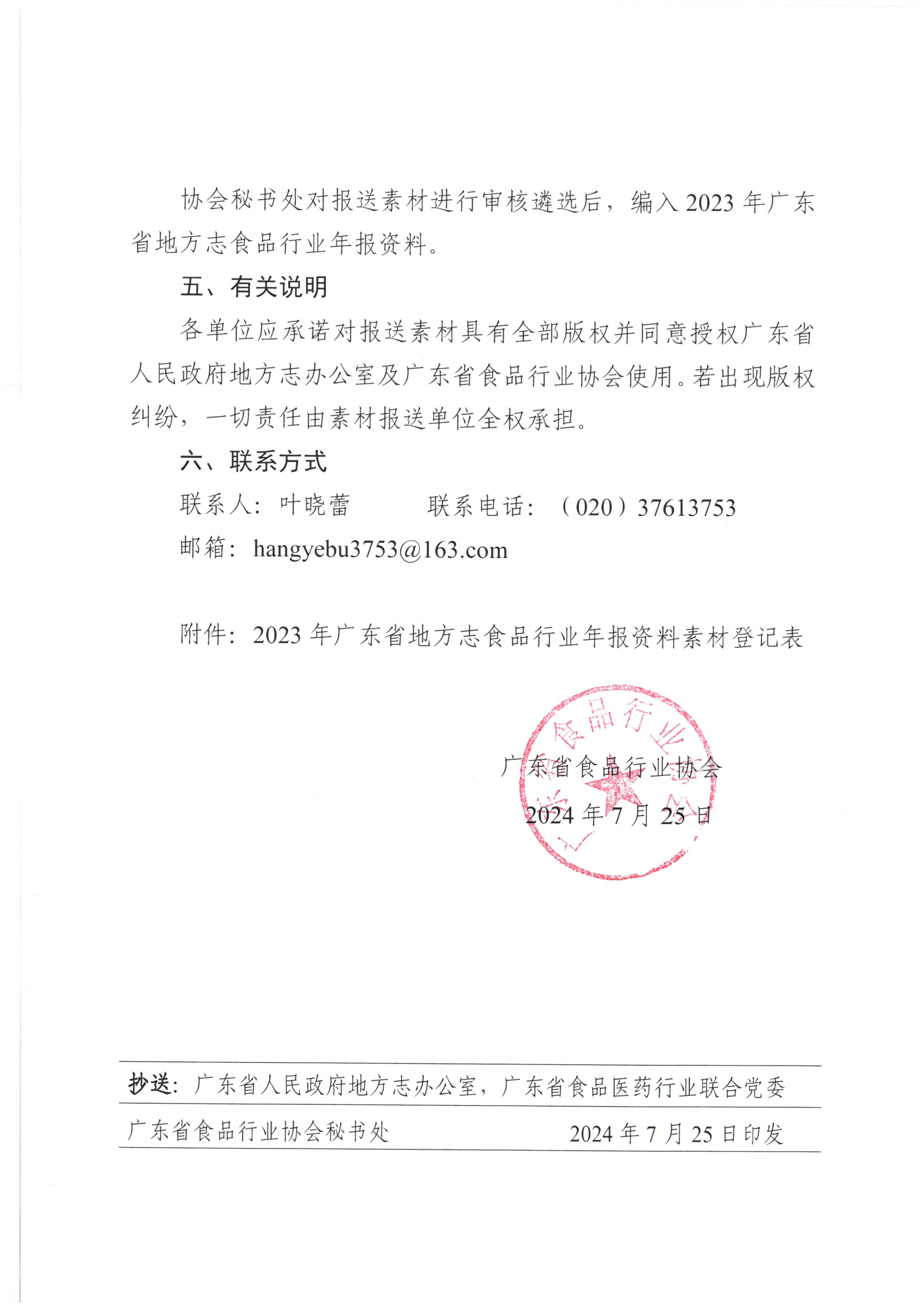关于征集2023年广东省地方志食品行业年报资料素材的通知