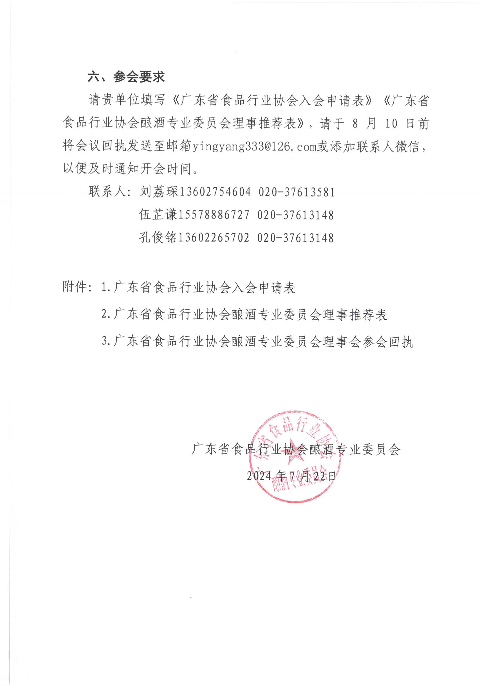 关于召开2024年广东省食品行业协会酿酒专业委员会理事会的预通知