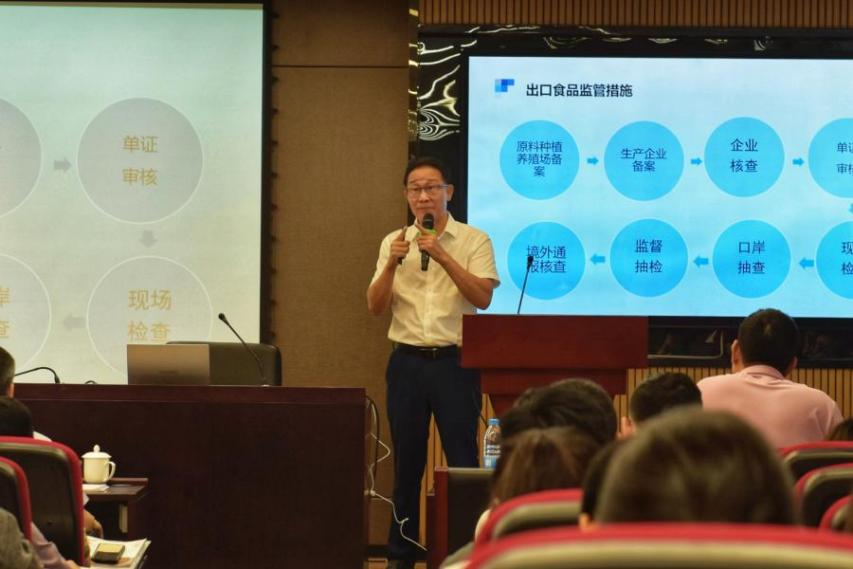 愿景很美好,现实很骨感。企业的产品想要出海除了轰轰烈烈去走市场、上新品之外,还得静下心来研究两道大关卡:海关监管和目标市场进口规定。在会上,广州海关技术中心食品与化妆品研究所所长、研究员陈文锐就国内出口监管条例和流程进行了讲解。 “合规”是食品出口的第一要义。陈文锐介绍,《进出口食品安全管理办法》《出口食品企业备案》《出口食品生产企业安全卫生要求》这三件“大骨头”,每个向外走的食企都得啃透。