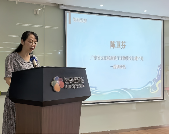广东省文化和旅游厅非物质文化遗产处一级调研员陈卫芬出席会议并发表讲话,她表示,凉茶非遗传承保护发展研修班是一个非常好的交流平台,希望大家能珍惜此次机会,积极沟通,深化合作,齐心协力推进凉茶事业的高质量发展。同时,她希望大家不忘初心,秉承工匠精神,用心用情、全心全力、真心真意地致力于非遗的传承工作,共同推动广东非遗文化迈向更加辉煌的未来。