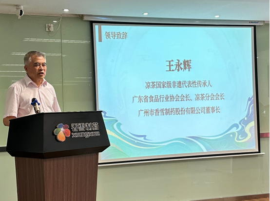 凉茶国家级非遗代表性传承人、广东省食品行业协会会长、广州市香雪制药股份有限公司董事长王永辉出席会议并致辞。王会长强调,将凉茶申请为国家级非物质文化遗产是传承保护凉茶的一大创举,也是凉茶产业发展的重要转折点,它挽救濒危的凉茶产业,促进了凉茶产业高速发展。广东省食品行业协会作为凉茶国家级非遗项目保护单位,始终牢记习总书记“一定要做大做强凉茶产业”的殷切嘱托,带领广东凉茶行业企业制定了凉茶产业保护计划、开展了大量凉茶文化传播活动,将凉茶文化推向全国全世界。他呼吁各凉茶企业要珍惜来之不易的凉茶国家级非物质文化遗产,维护好凉茶非遗品牌,继承和发扬好凉茶优秀的传统文化。