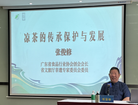 广东省食品行业协会创会会长、省文旅厅非遗专家委员会委员张俊修讲述了凉茶申请国家级非物质文化遗产的曲折过程,并结合多年行业管理经验,阐述了凉茶传承保护发展的道路:一是要结合现有的市场发展趋势和消费者的口味变化,在保留传统技艺基础上,守正创新,与时俱进开发新产品,不断挖掘凉茶蕴含的养生文化内涵,丰富凉茶不同物质载体,继承发扬凉茶文化;二是发挥好广东省食品行业协会凉茶国家非遗保护单位的作用,大力开展凉茶文化传播活动,积极宣传凉茶,维护凉茶行业健康发展;三是要通过发挥自身优势,用好政府产业扶持政策,吸引消费者的支持来发展凉茶行业。