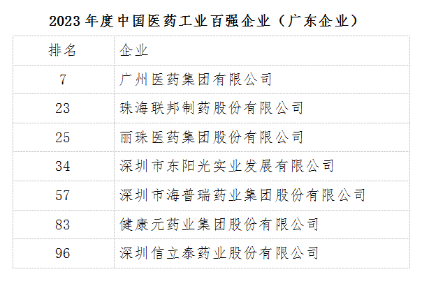 9月7日,2024年(第41届)全国医药工业信息年会暨“2023年度中国医药工业百强榜单发布会”在成都召开。会上发布了2023年度中国医药工业百强企业名单,我省广药集团、丽珠医药集团、珠海联邦制药、深圳海普瑞、深圳东阳光药业、健康元、信立泰7家企业上榜,上榜企业数量居全国前列。