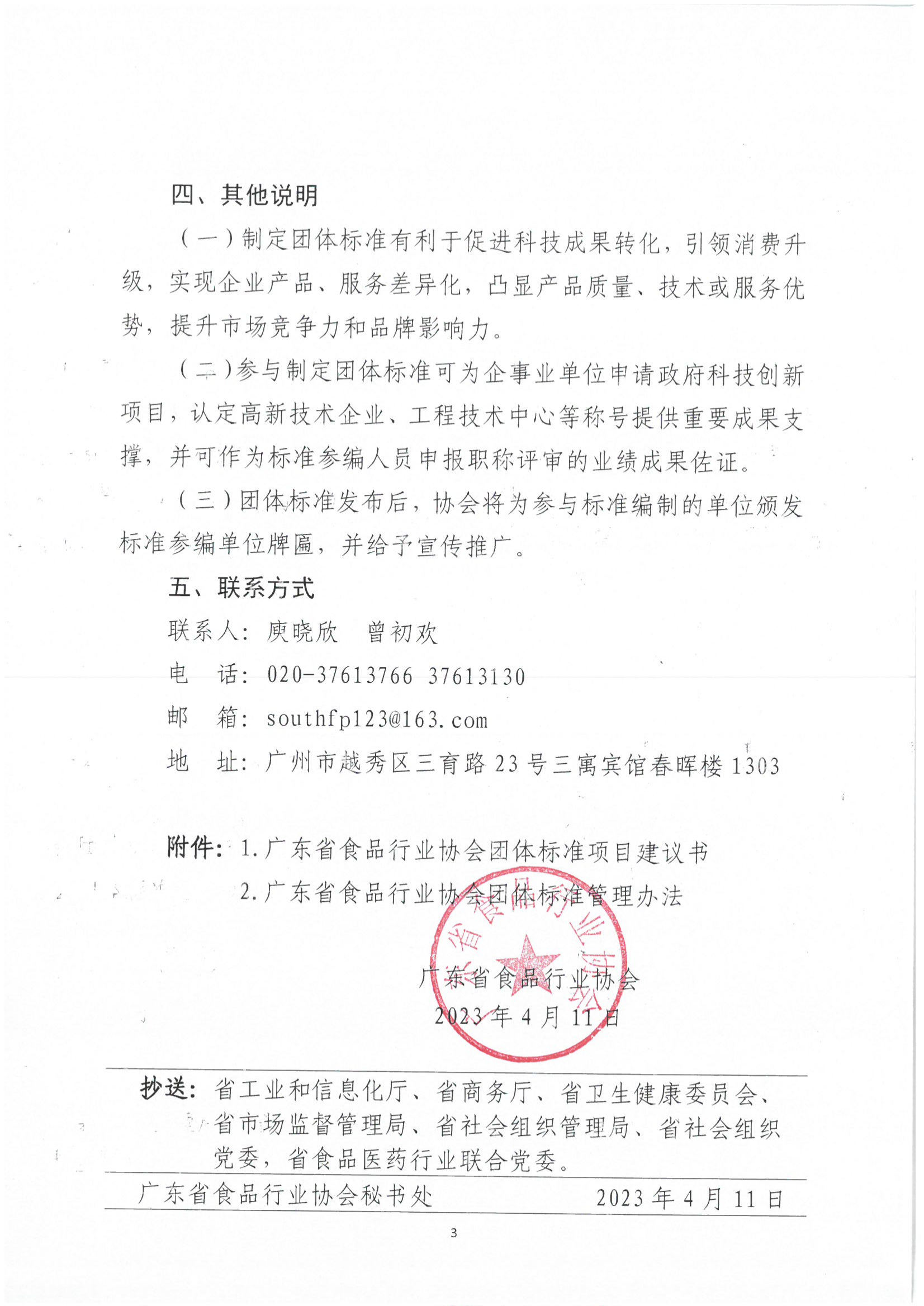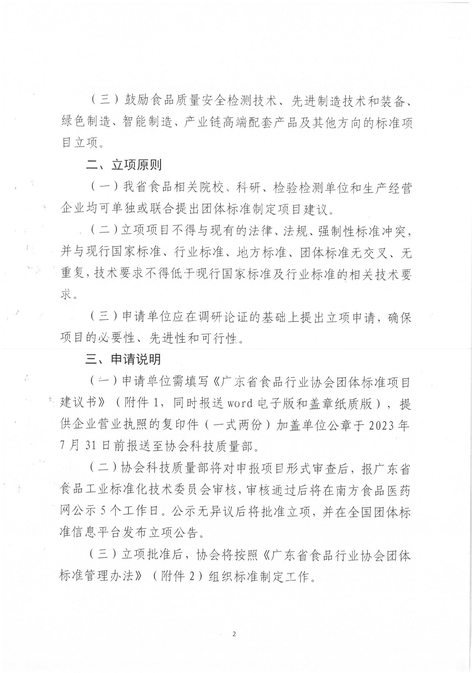 关于征集2023年广东省食品行业协会团体标准项目的通知
