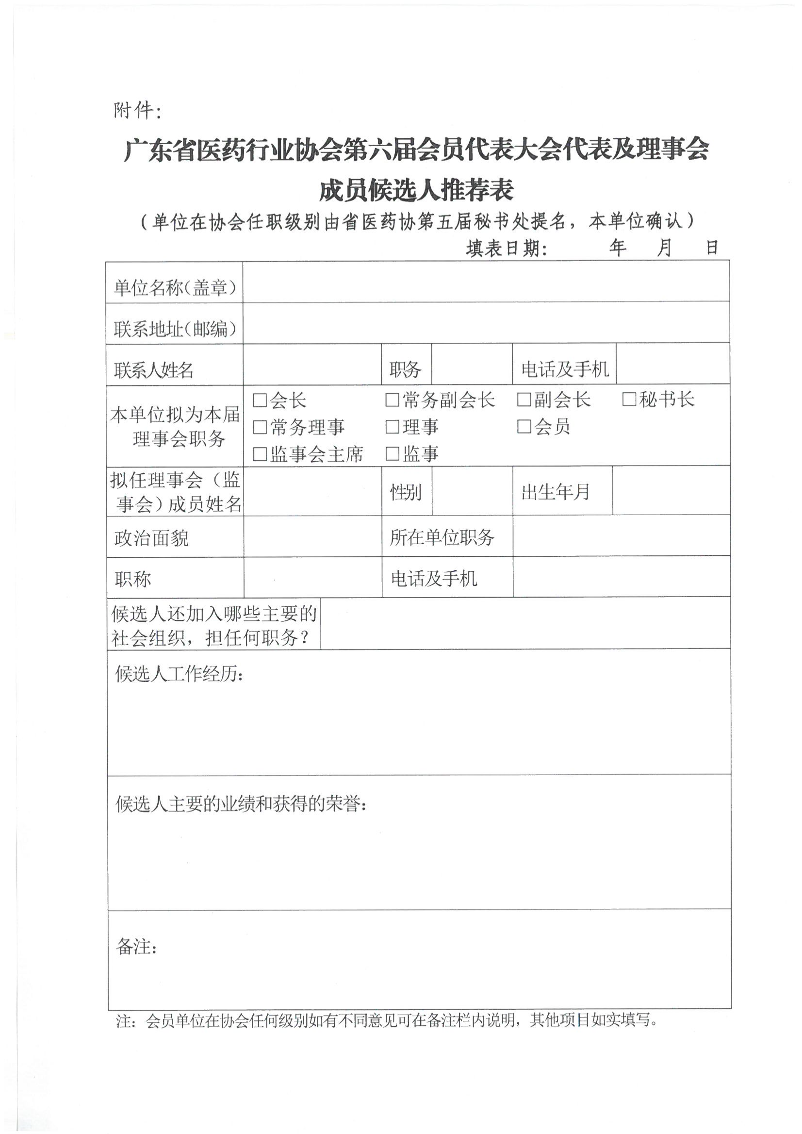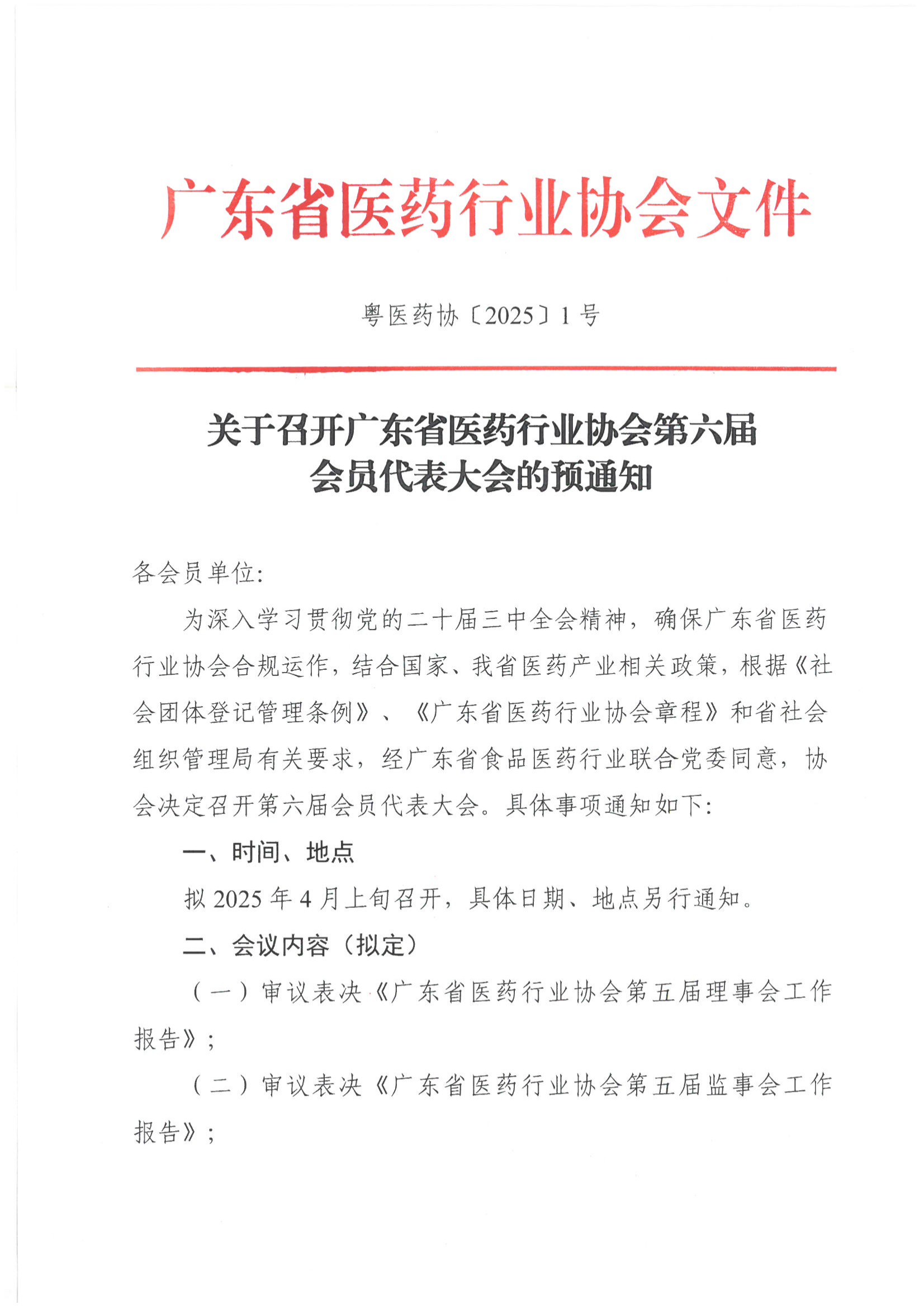 关于召开广东省医药行业协会第六届会员代表大会的预通知