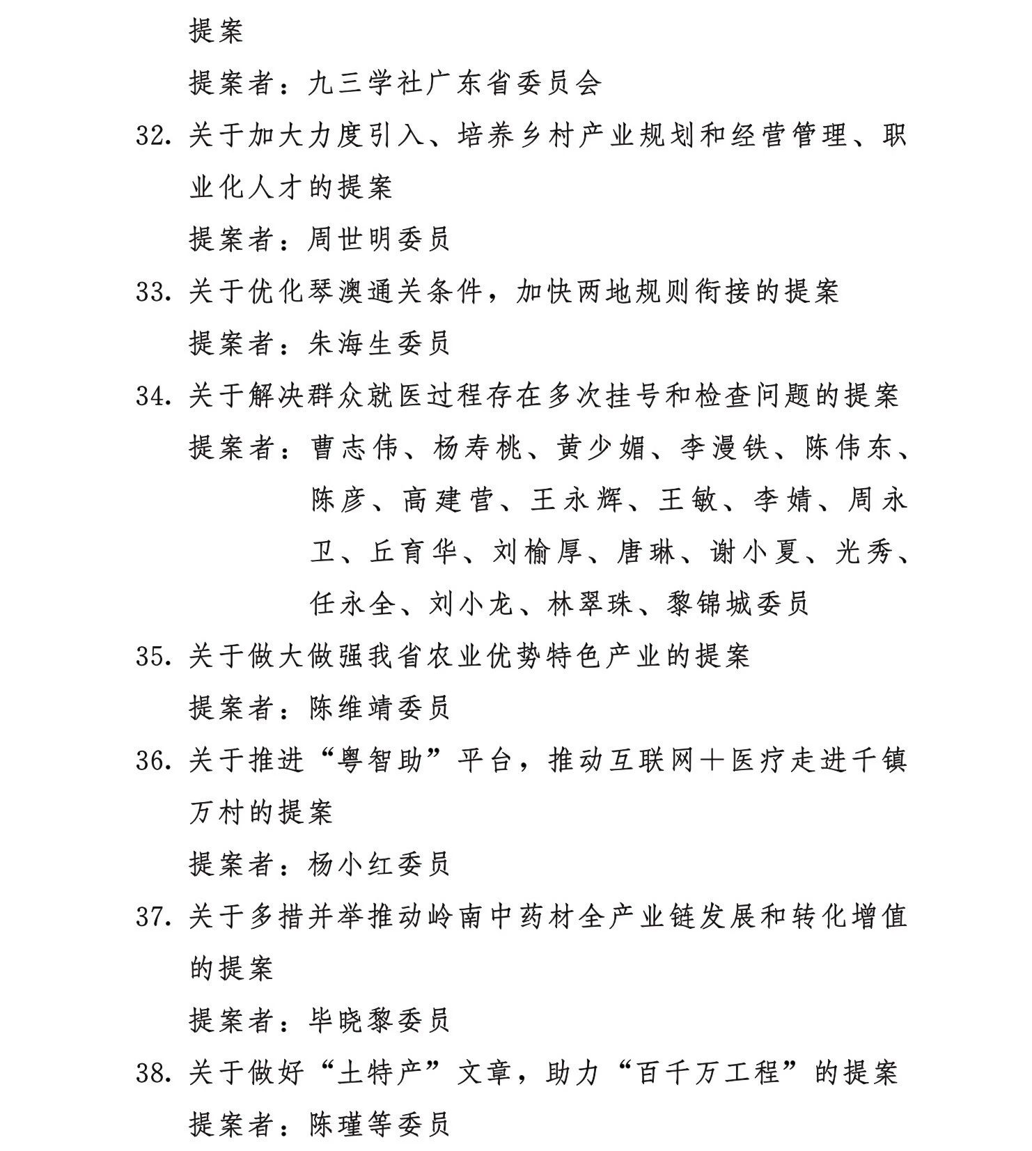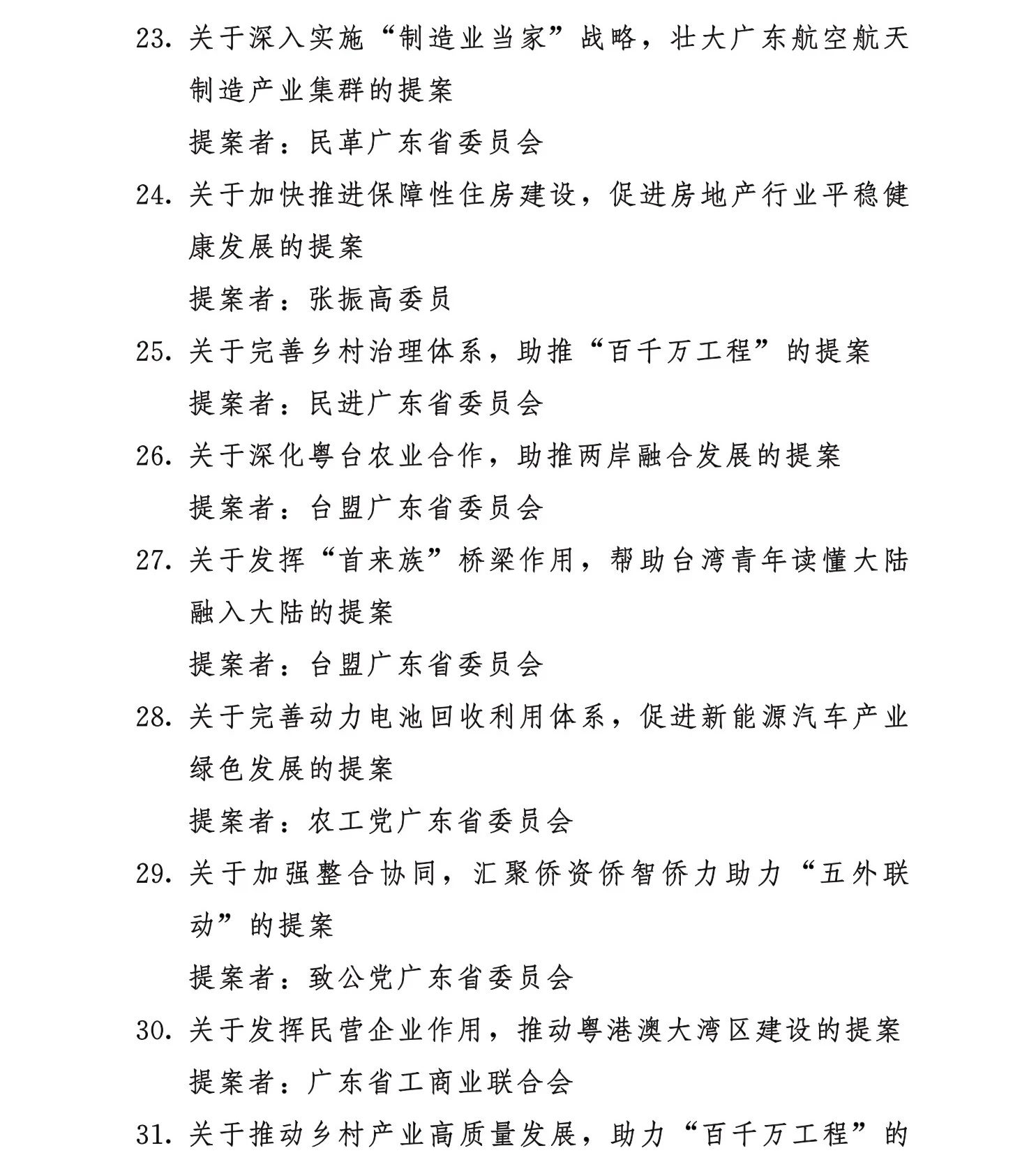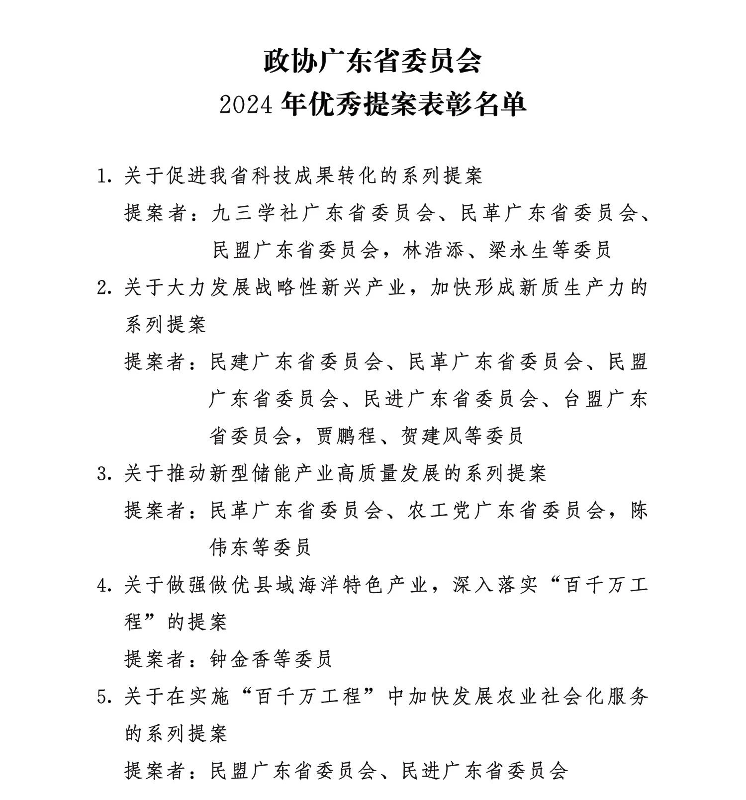 1月14日,广东省政协十三届三次会议在广州开幕。大会听取中国人民政治协商会议广东省委员会常务委员会关于政协十三届二次会议以来提案工作情况的报告,并对《关于深挖湾区优势,助推中小生物医药企业出海高质量发展的提案》等46件优秀提案、22名履职表现突出的委员予以表彰。具体名单如下: