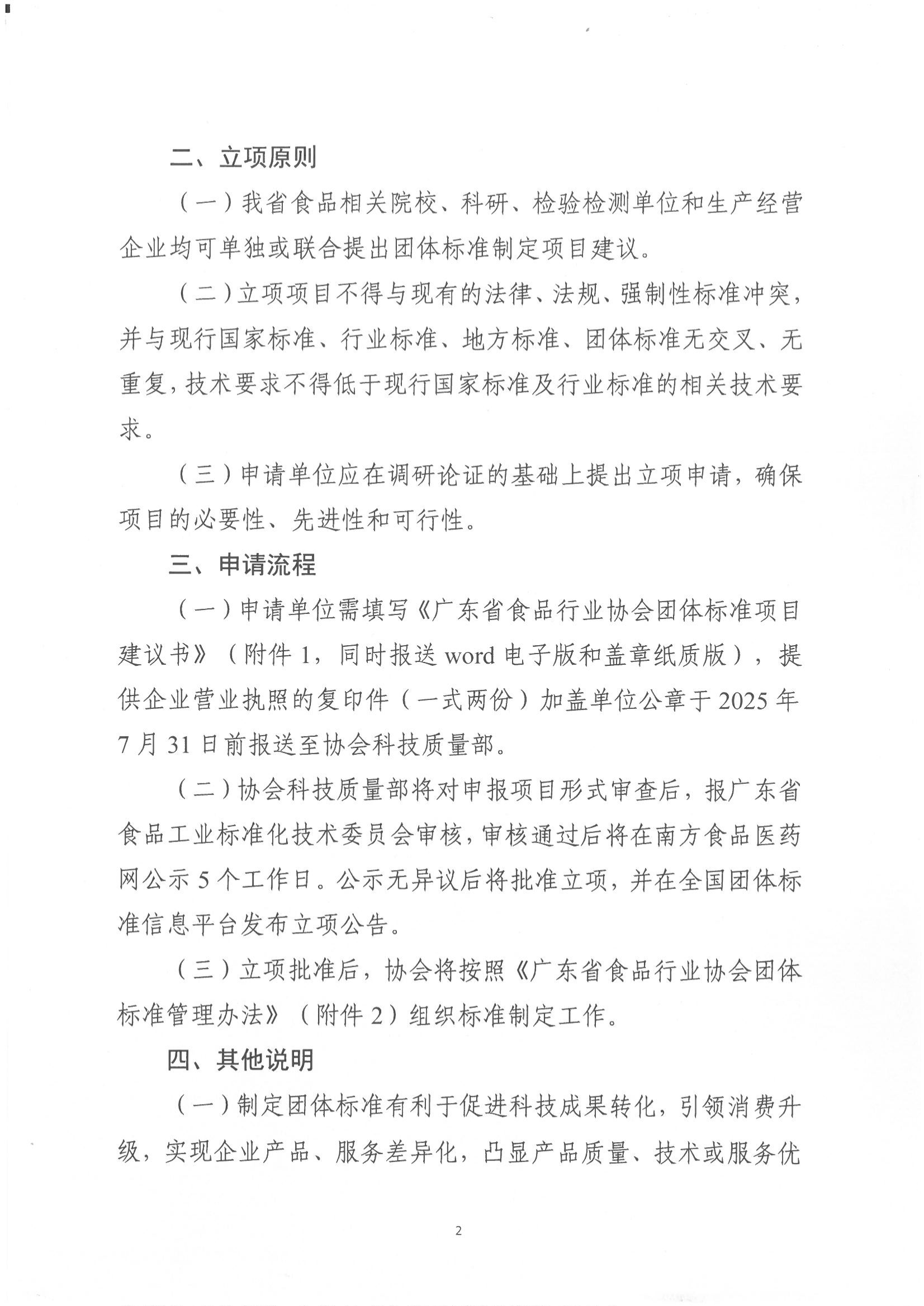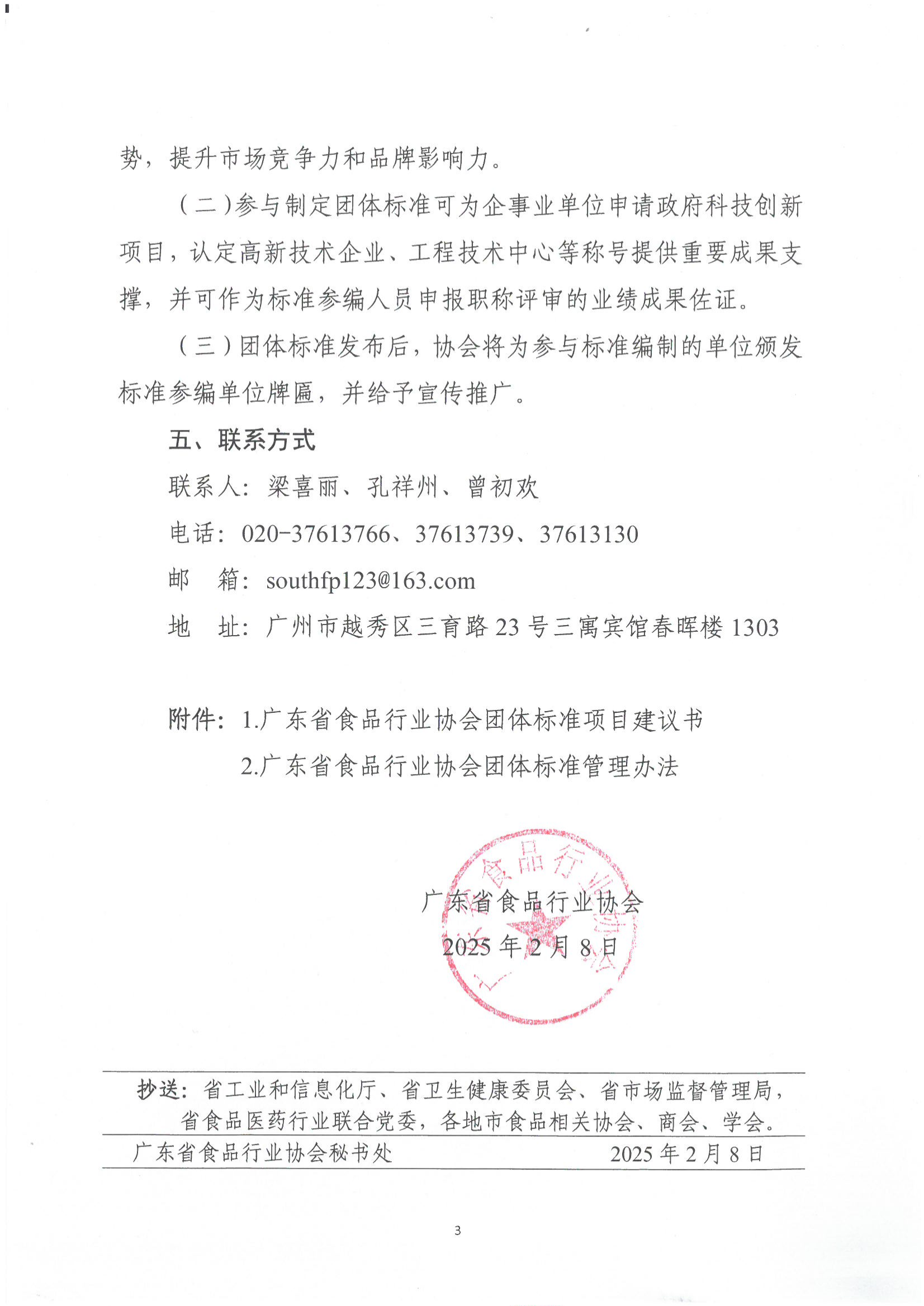 关于征集2025年广东省食品行业协会团体标准项目的通知