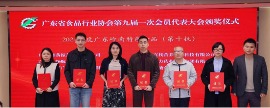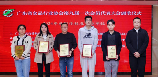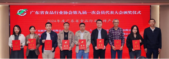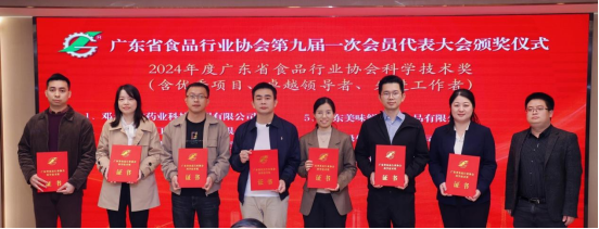 颁发2024年度广东省食品行业协会科学技术奖证书