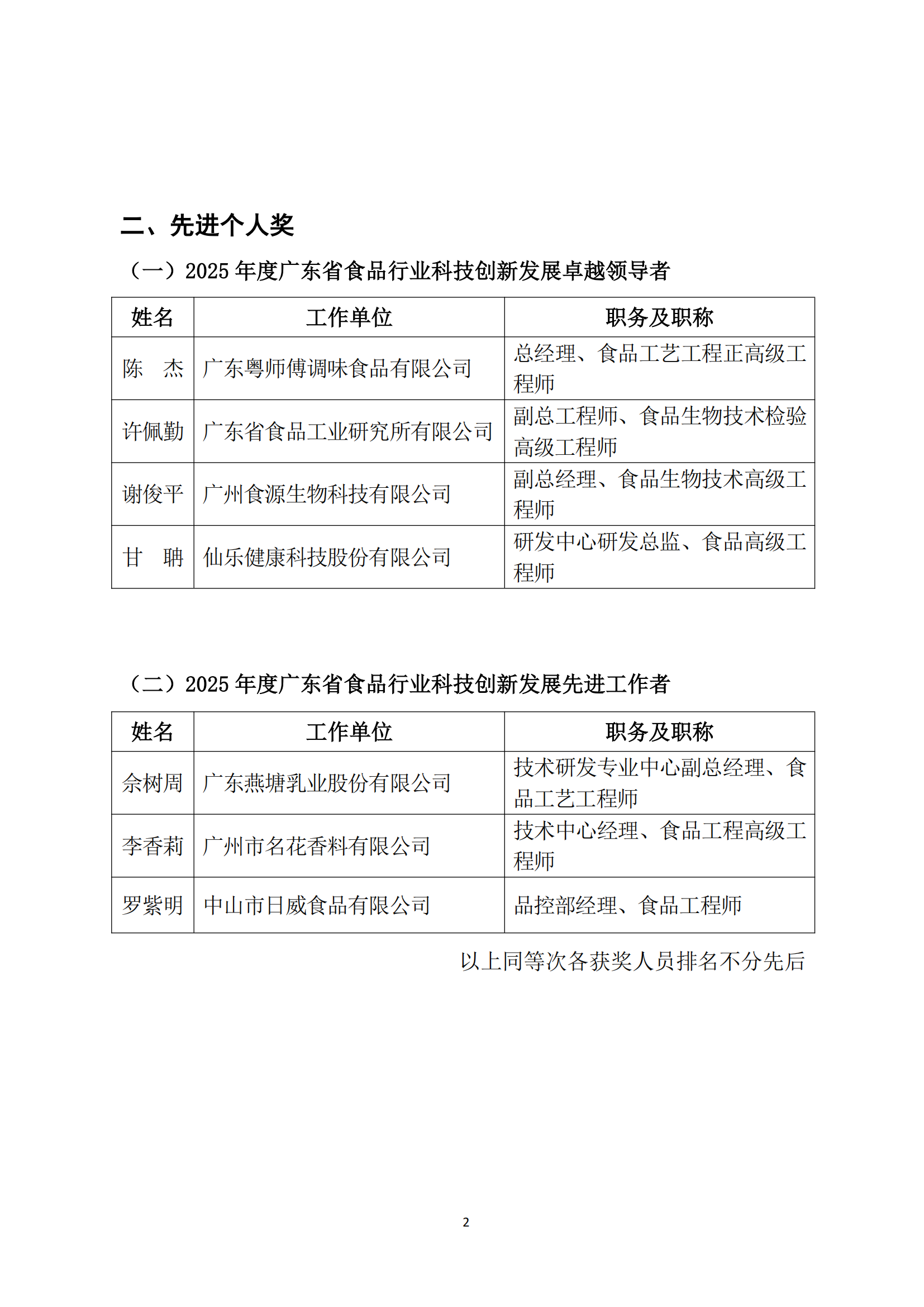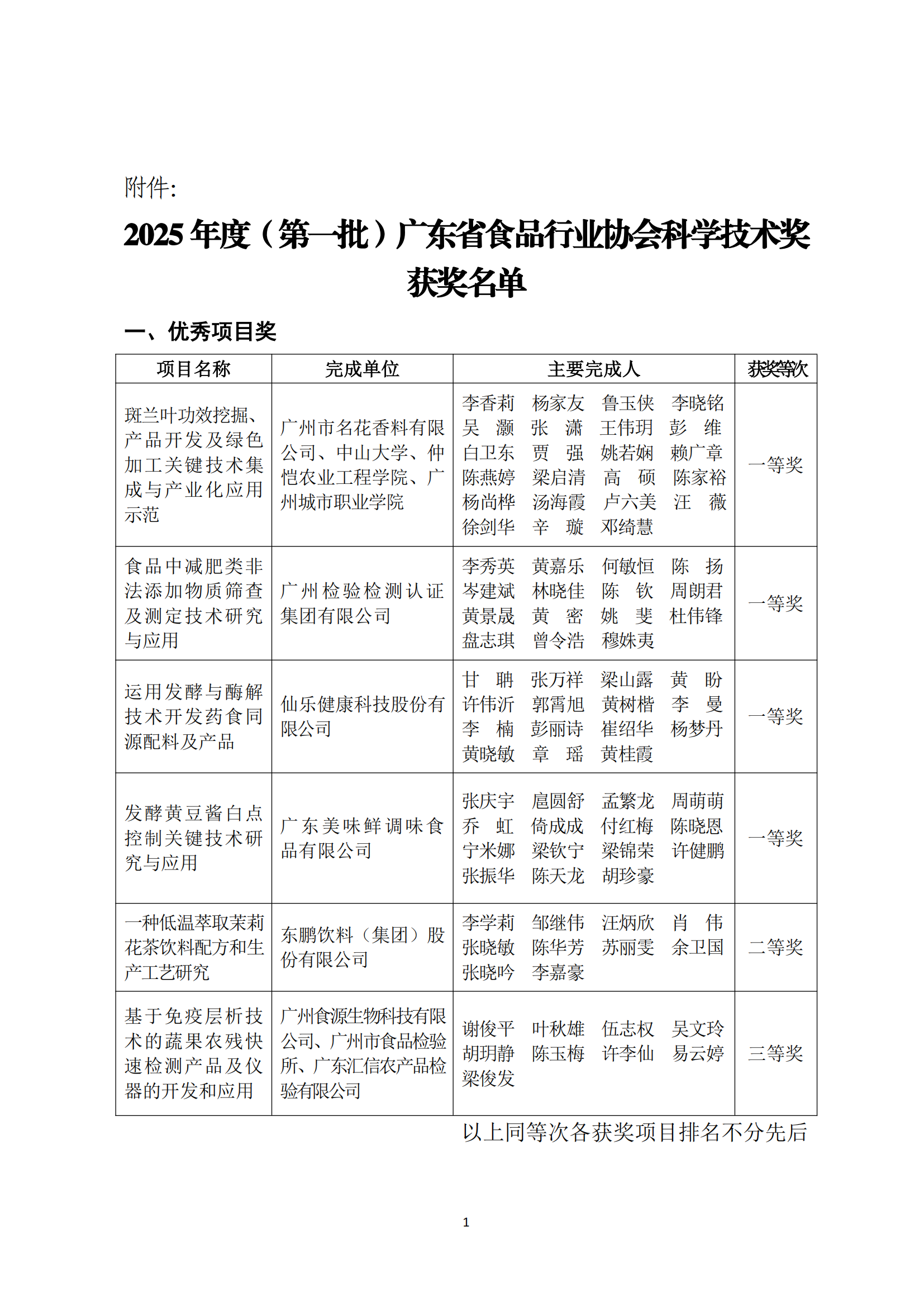 关于发布2025年度(第一批)广东省食品行业协会科学技术奖的通告