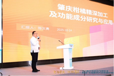 健康饮料的根本是健康原料,优质、稳定的原料供应是食品饮料企业大展手脚的基础,肇庆四会桔田源生物科技有限公司主导研发了“一果六联产”精深加工模式,能够将一颗沙糖桔转化为果汁、精油、膳食纤维、桔子醋、果酒等高附加值产品。董事长陈文勇先生在会上分享道,桔田源的企业目标是打造全球柑桔研究中心,能实现高效生产原汁、精油、柑桔纤维、果胶、柑桔黄酮等14种柑桔类健康创新原料供应。