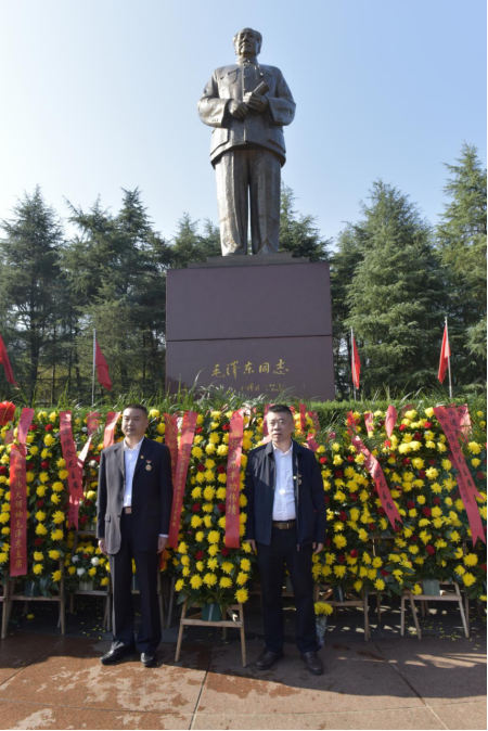 “东方红,太阳升,中国出了个毛泽东。”此程,学习团来到毛泽东同志诞生和成长的地方——韶山。在韶山毛泽东广场,毛泽东同志铜像庄严肃穆,在阳光的照耀下熠熠生辉。中共广东省食品医药行业联合委员会原书记、食品协会、医药协会创会会长张俊修,联合党委书记曾祥云,联合党委副书记、食品协会会长冯立科带领学习团全体成员怀着无比崇敬的心情,整齐列队于广场,缓步走向铜像,向伟人敬献花篮,深深鞠躬,深切缅怀一代伟人的丰功伟绩。