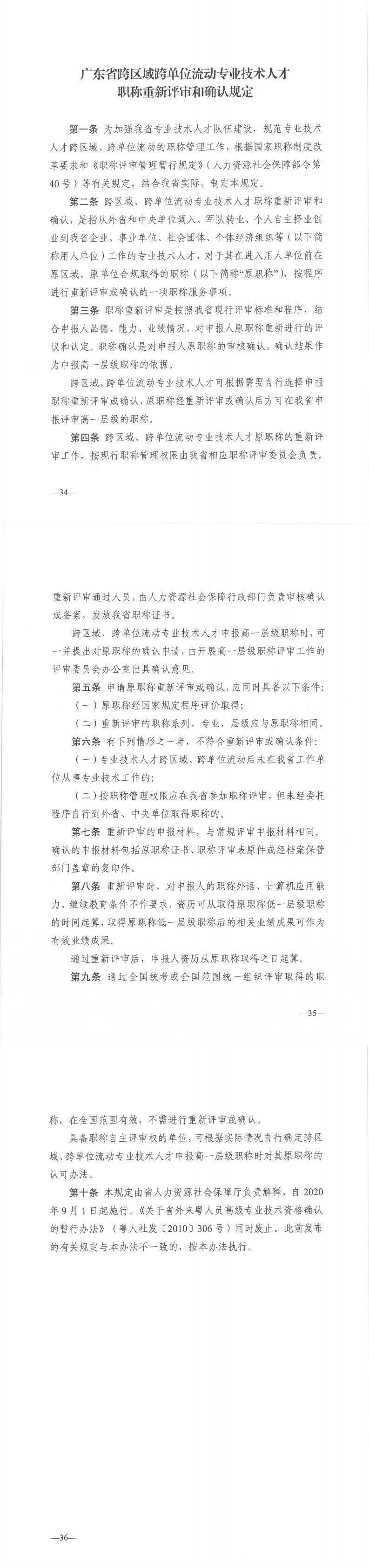 广东省跨区域跨单位流动专业技术人才职称重新评审和确认规定