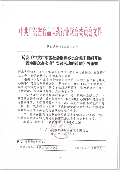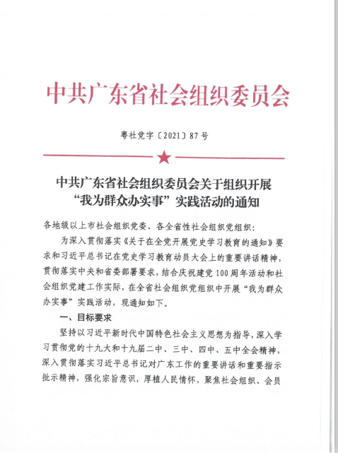 转发《中共广东省社会组织委员会关于组织开展“我为群众办实事”实践活动的通知》的通知