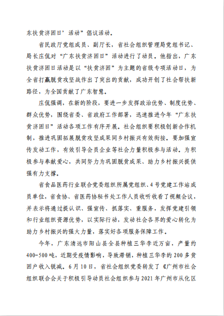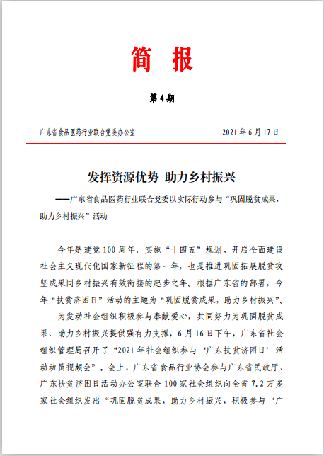发挥资源优势 助力乡村振兴——广东省食品医药行业联合党委以实际行动参与“巩固脱贫成果, 助力乡村振兴”活动