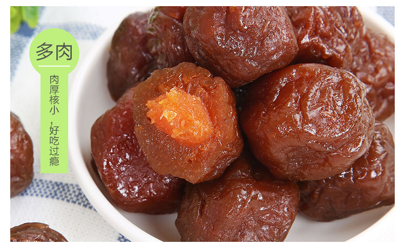 加应子被誉为“中国西梅”,2018年被评为”广东食品行业名牌产品“.选用优质三华李,经过选果分级,清洗,去除苦涩 ,渗糖 ,烘干 ,拌料,阳光房晒制等多道工艺精制而成,果肉饱满厚实,内核小,口感酸甜爽脆开味,老少皆宜。