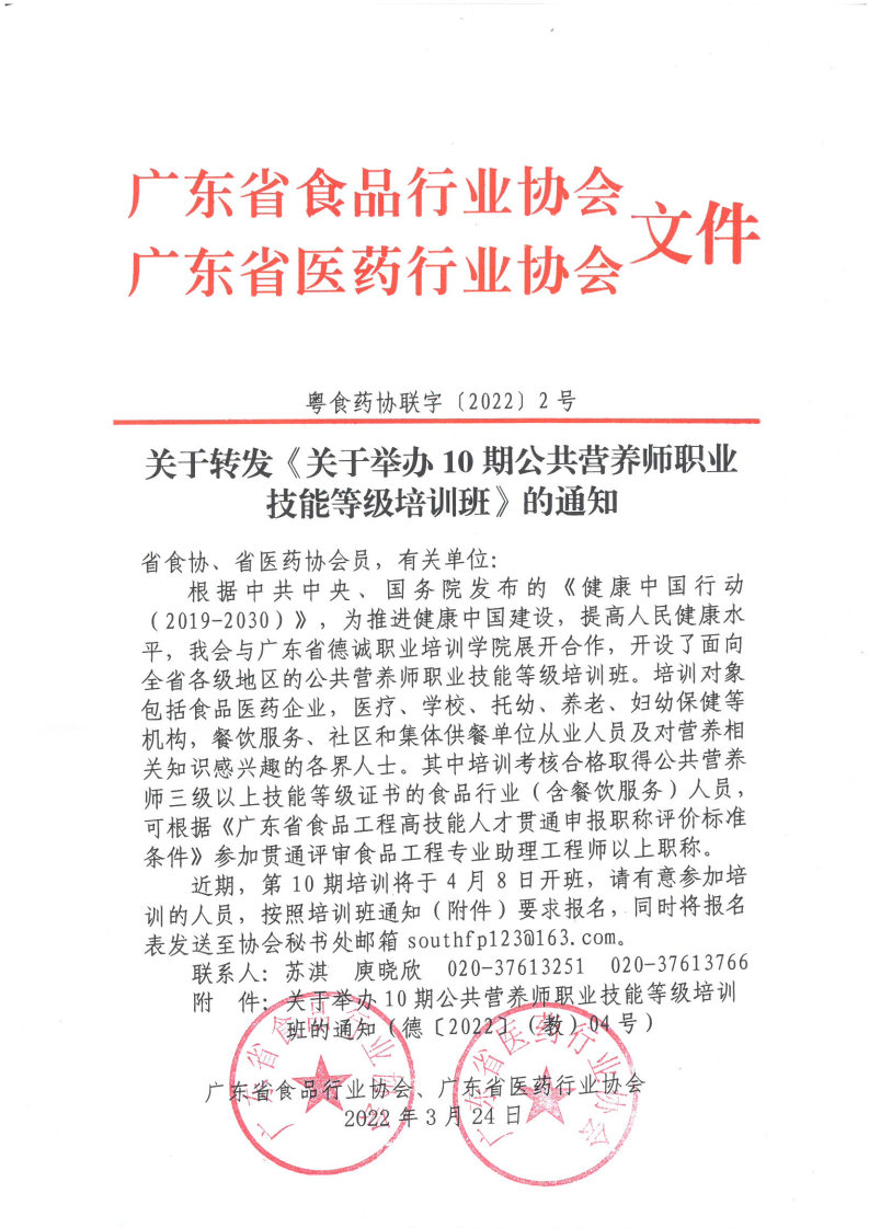 关于转发《关于举办10期公共营养师职业技能等级培训班》的通知