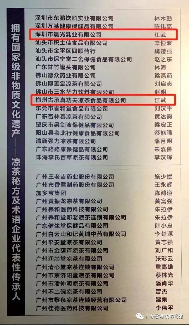 古承真功夫凉茶始于1871年,为国家级非物质文化遗产、广东省食品文化遗产。出生于中医世家的总经理江武先生,为古承真功夫凉茶传承人、广东凉茶协会理事会员。公司专业从事凉茶植物饮料的研发、生产、销售。