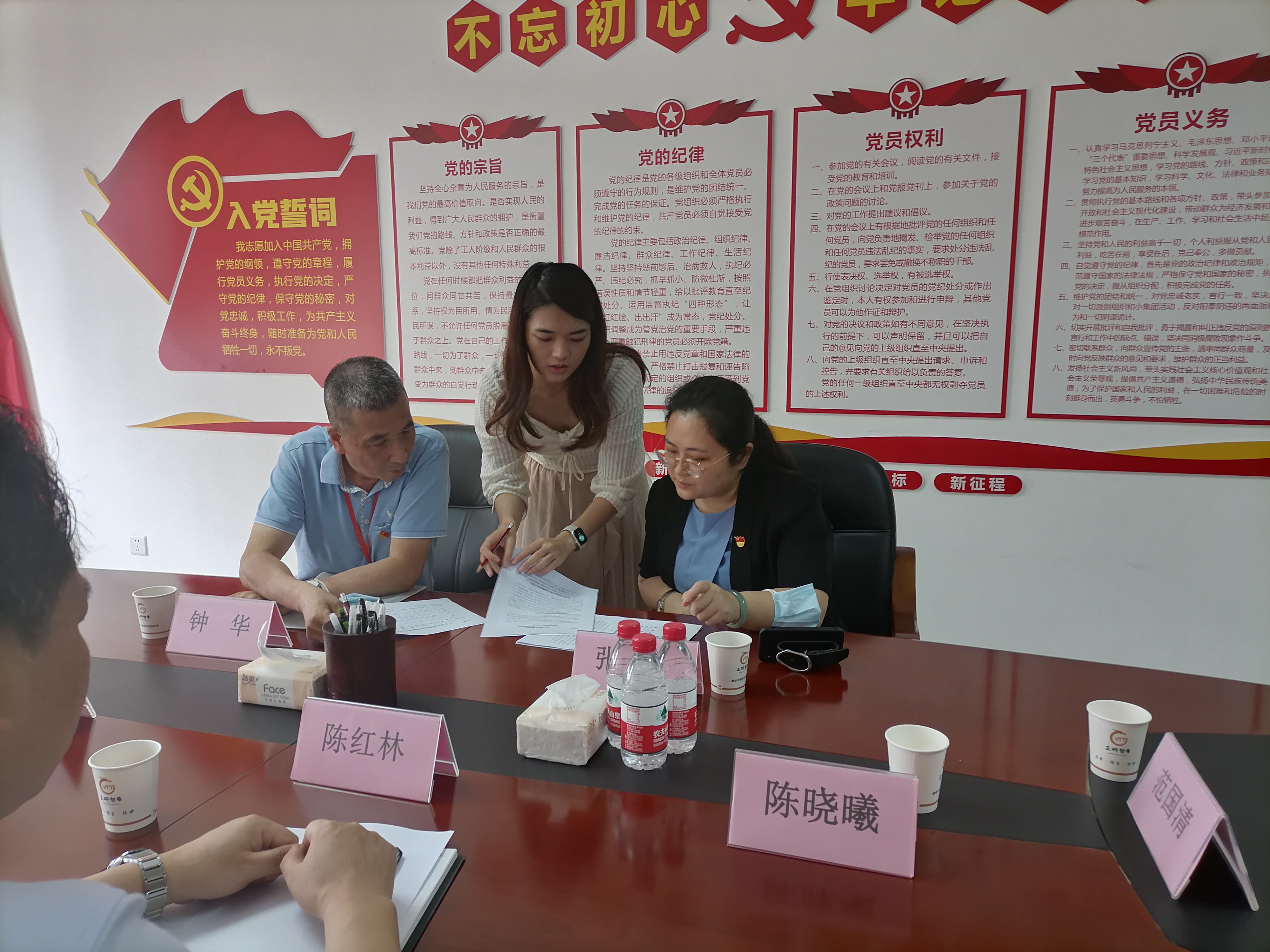 为响应党中央关于加强社会组织党的建设工作的号召,在对接广东省社会组织党建工作指导员的指导下,广东省正研智库咨询服务中心于2022年6月10日下午在广州市天河北路广东社会科学中心12楼会议室,召开党支部成立筹备工作会议。服务中心党员陈红林、朱紫晴、陈晓曦出席会议(因疫情防控,党员刘召山连线参会),理事会常务副理事长范国清列席会议,党建工作指导员钟华和党建工作指导员、省社会组织004号工作站站长助理张露璐参加会议。会议主要议题:确定党组织成立筹备机构组成及筹备工作计划;推荐拟任中共广东省正研智库咨询服务中心支部书记(副书记)候选人。