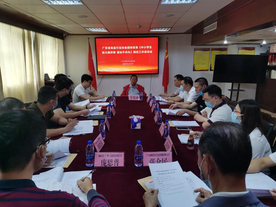 为充分发挥团体标准“推优扶优、先进引领”的作用,满足中小学幼儿园学生的饮食喜好和营养需求,广东省食品行业协会于2022年6月17日下午主持召开了《中小学幼儿园供餐 潮汕牛肉丸》团体标准制定工作启动会。广东省食品医药行业联合党委书记张俊修出席本次会议,广东省食品工业研究所有限公司、广东省公共卫生研究院、仙味爷爷(广州)食品科技有限公司、汕头市潮庭食品股份有限公司、广东真美食品股份有限公司、广东笑咪咪食品有限公司、广东扬航食品有限公司、广东潮禧饮食文化传播有限公司、汕头市万壮食品有限公司等标准起草单位代表参加了本次会议,广东省食品行业协会副秘书长曾初欢主持了会议。