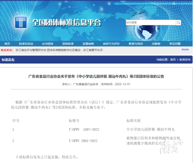 12月3日,记者从广东省食品行业协会获悉,该协会团体标准《中小学幼儿园供餐 潮汕牛肉丸》正式通过全国团体标准信息平台审核。