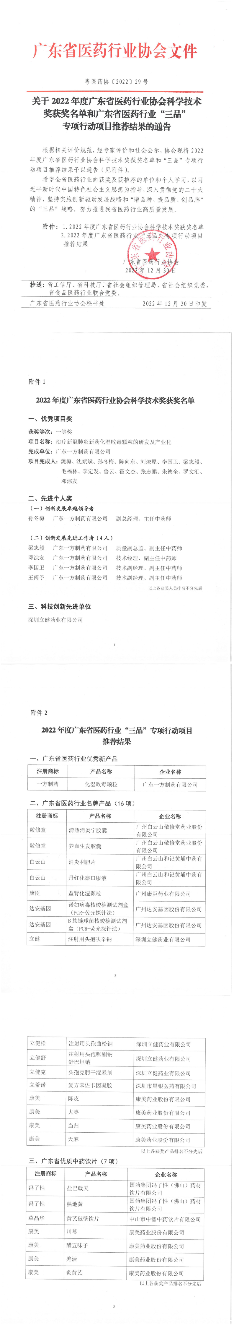 关于2022年度广东省医药行业协会科学技术奖获奖名单和广东省医药行业伟德国际手机1946项目推荐结果的通告
