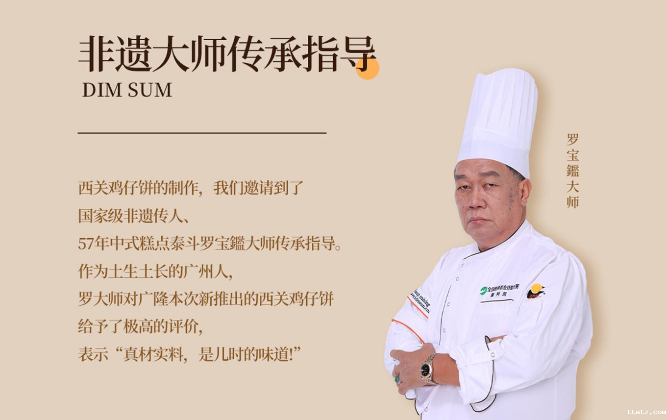 鸡仔饼作为广东四大名饼之一,不仅是许多广府人童年记忆的地道美食,更是逢年过节访亲拜友的送礼佳品。“广隆”蛋挞王作为广东知名品牌,为了更好地担起传承粤式中点文化重任,提高传统美食的营养价值和味觉体验,在鸡仔饼研发初期,便请非遗传承大师罗宝鑑全程亲历指导,不断提升工艺技术,精选优质食材,严格把控油糖配比与烘烤时间,全程锁闭香味,久放依旧酥脆可口,油香四溢。