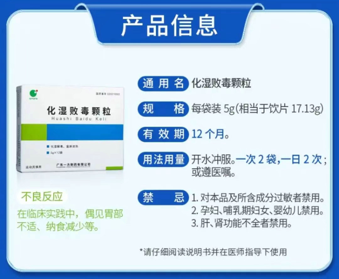 化湿败毒颗粒以中医疫病理论为指导,在集合经典名方及武汉金银潭医院、方舱医院、雷神山医院等新冠肺炎定点救治机构临床实践的基础上,研制开发的具有自主知识产权的治疗新冠肺炎的中药新药,具有化湿解毒,宣肺泄热功效,用于湿毒侵肺所致的疫病,症见发热、咳嗽、乏力、胸闷、恶心、肌肉酸痛、咽干咽痛、食欲减退、口中粘腻不爽等。其在抗击病毒、消除炎症、提高免疫力方面疗效确切,作用机理明晰,在新冠肺炎防治方面发挥了重要作用,并为病毒感染性肺炎的治疗提供支撑。化湿败毒颗粒的成功上市,具有里程碑意义,不仅是中医药传承精华,守正创新的重大实践,为中医药在应对新发、突发重大公共卫生事件中发挥独特优势和作用提供了有力支撑;更是开辟了一条遵循中医药规律,改革中药审评审批制度的创新之路。