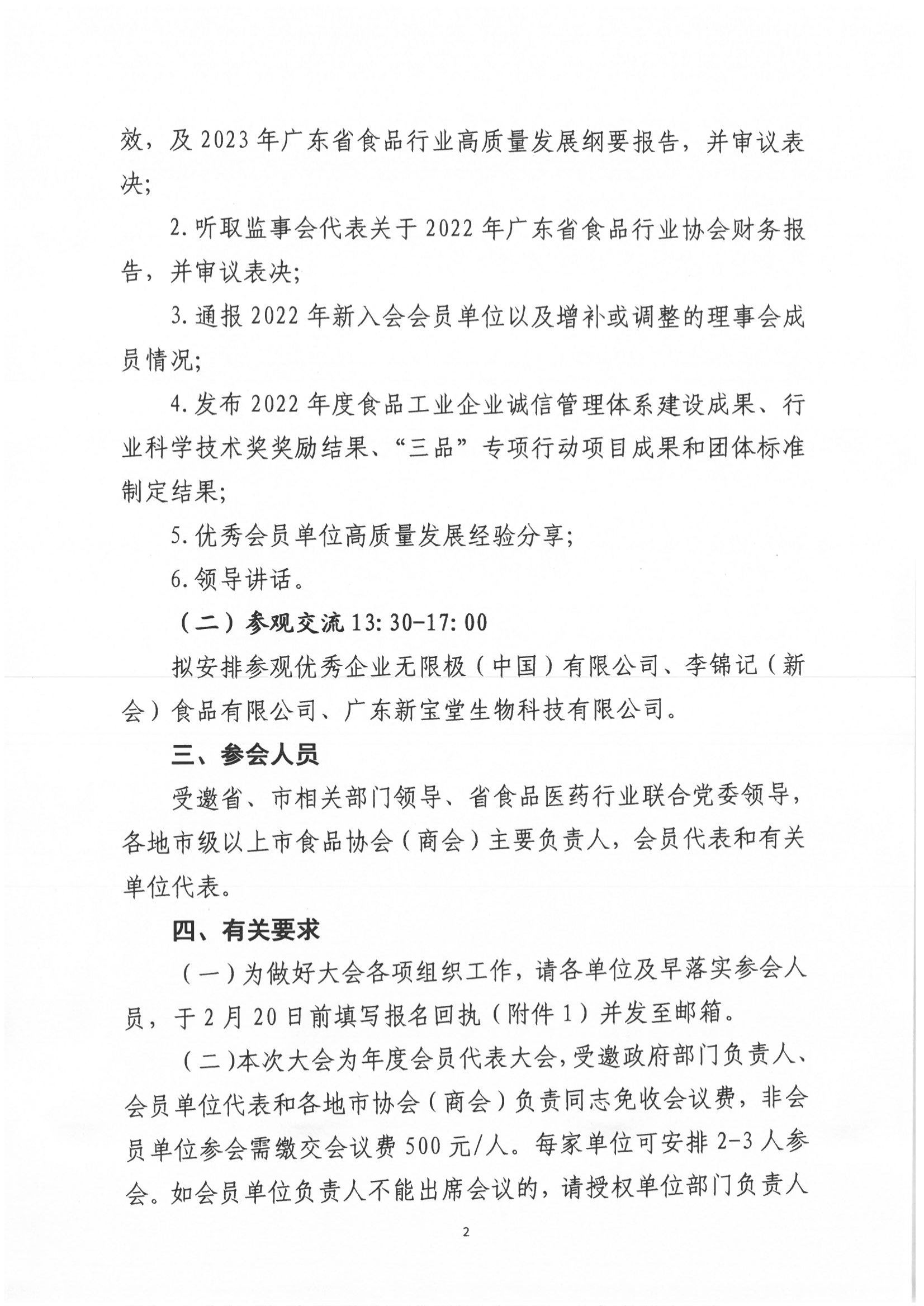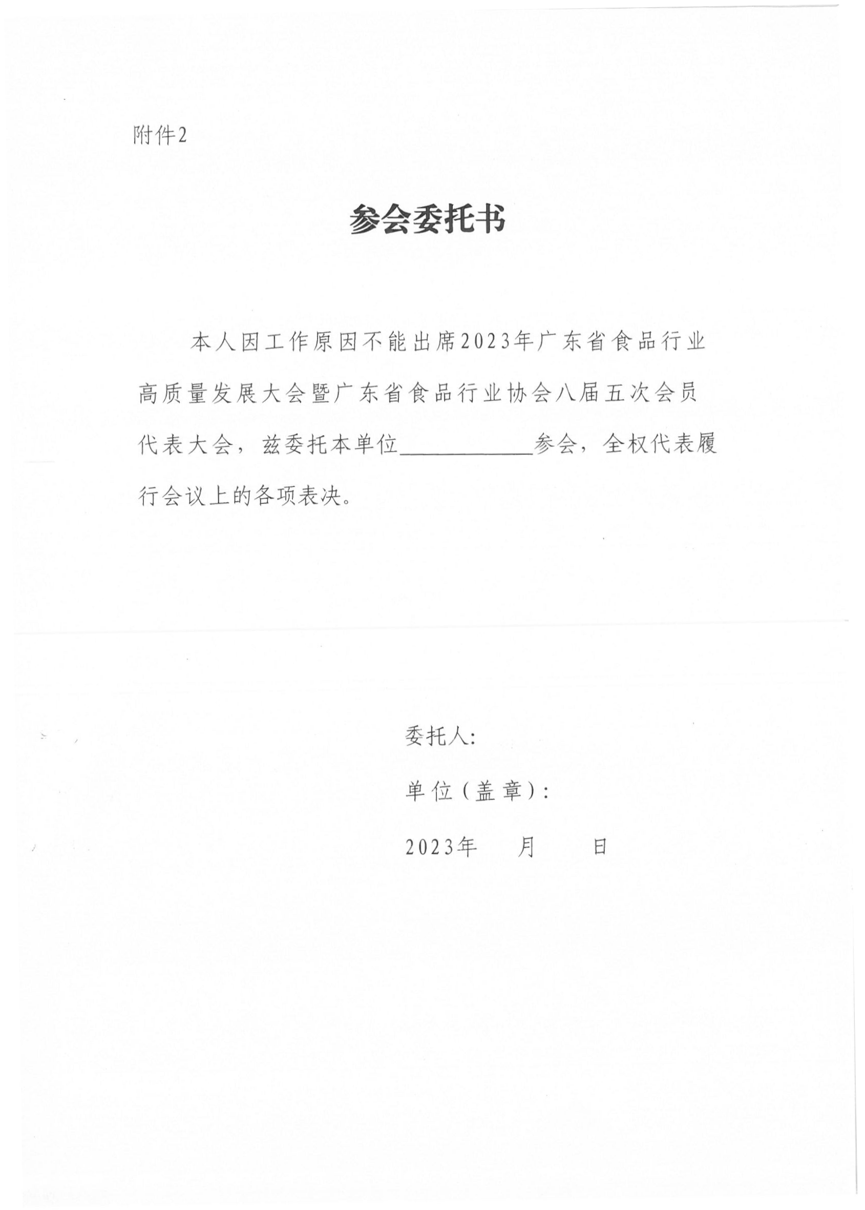 关于召开2023年广东省食品行业高质量发展大会暨广东省食品行业协会八届五次会员代表大会的通知