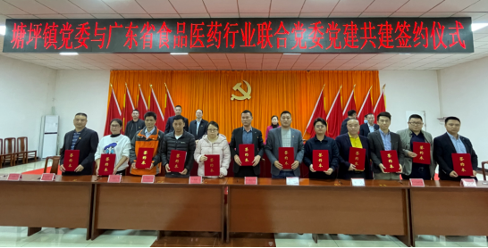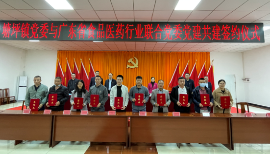 广东省食品医药行业联合党委下属17个党组织与塘坪镇下辖16个行政村和1个社区居委会党组织签约结对共建。