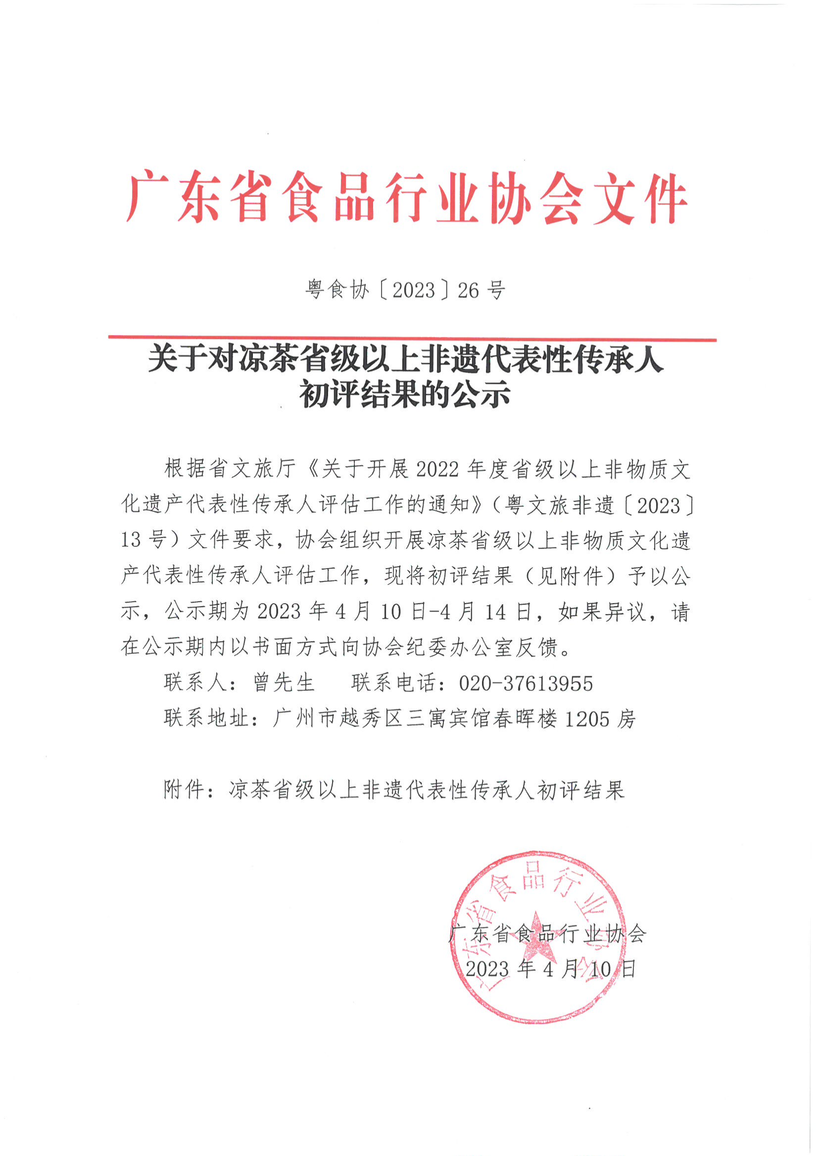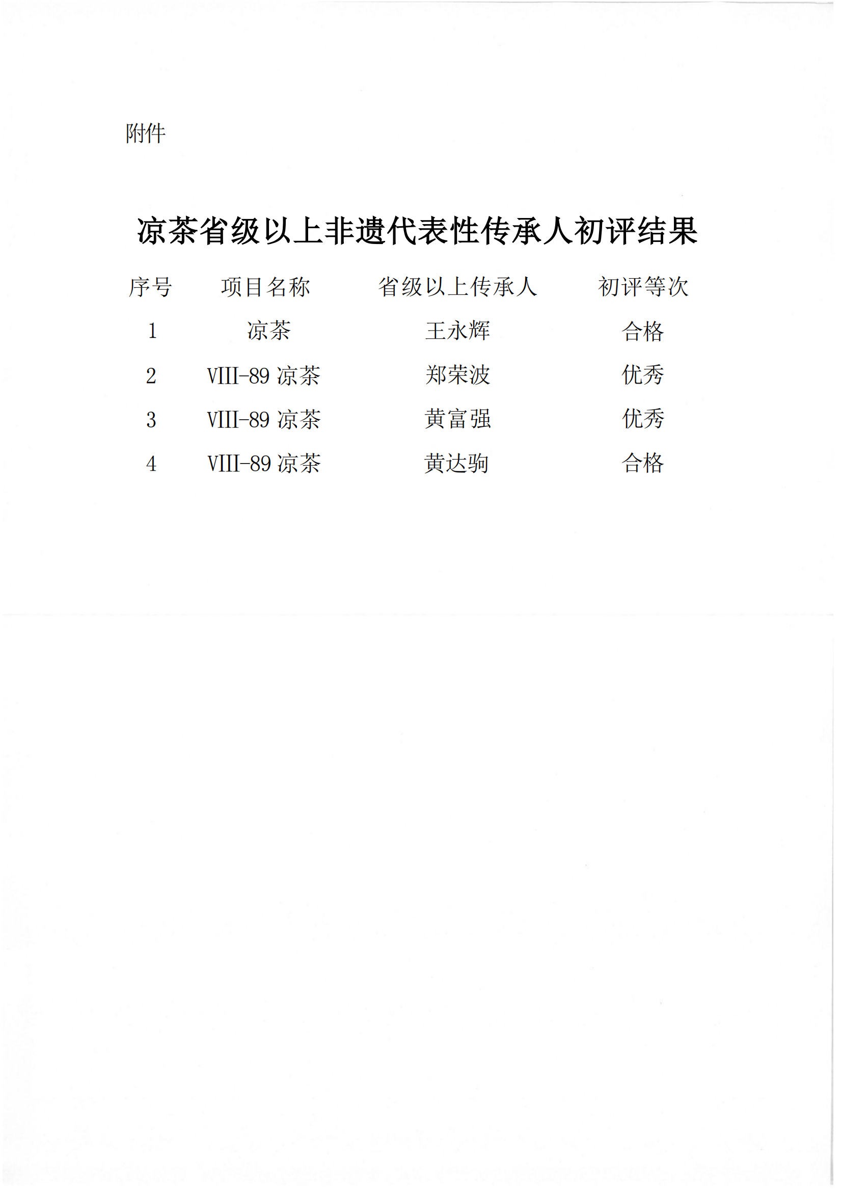 关于对凉茶省级以上非遗代表性传承人初评结果的公示