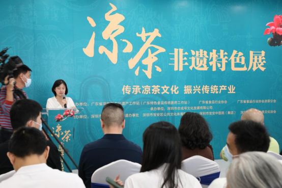 有人说,广东人是喝凉茶长大的。一杯凉茶到位,即可除烦止渴、解暑祛火……凉茶喝得多了,凉茶历史你是否了解过?4月14日“传承凉茶文化 振兴传统产业”凉茶非遗特色展在深圳广东岭南特色食品推广中心开幕,此次展览由广东省非遗文化遗产工作站(广东特色食品传统医药工作站)、广东省食品行业协会、广东省食品行业协会凉茶分会主办,深圳市合成号文化发展有限公司承办。广东省工业和信息化厅消费品工业处四级调研员廖碧丹,广东省食品医药行业协会联合党委书记张俊修、凉茶省级非遗传承人、王老吉药业副总裁、王老吉大健康副总经理、王老吉大健康研究院院长郑荣波等同志以及各非遗专家、民俗学者、凉茶企业代表、市民和各界媒体莅临活动现场。
