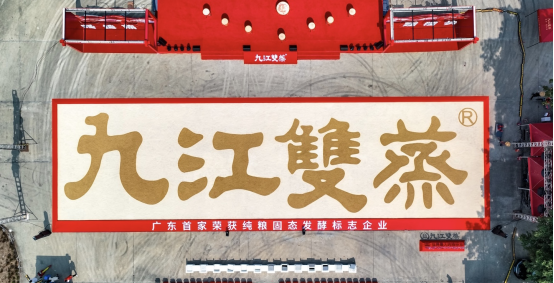 6月3日下午,在广东佛山双蒸1821酒庄广场,吉尼斯世界挑战——世界最大纯粮标志,随着一众领导将手中的米投在了前方的巨型LOGO上,由无数米粒堆起的“九江双蒸”品牌标识在此刻终于完整。此项吉尼斯世界挑战挑战内容为:以“珍珠米+籼米谷物” 组合摆制成442.76m²的九江双蒸品牌商标,并由吉尼斯世界纪录认证官现场认证。广东省食品医药行业联合党委书记张俊修受邀出席活动。