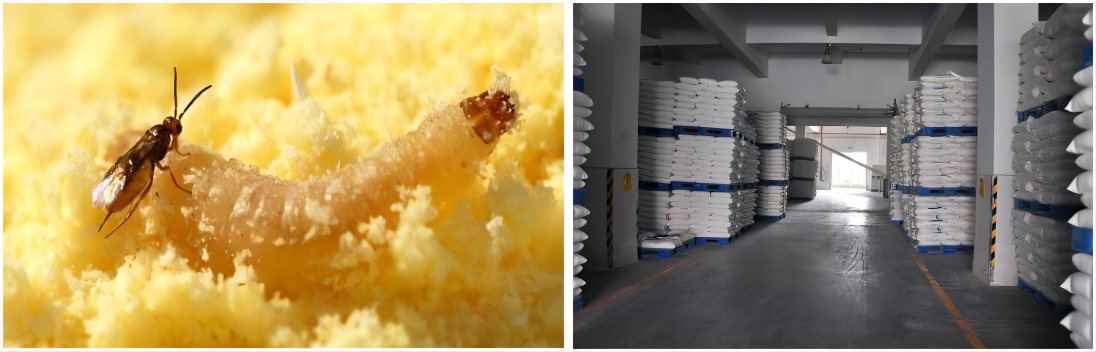 针对面粉加工流通领域害虫防治缺乏有效技术手段的问题,项目组提出了生物天敌麦蛾茧蜂控制蛾类防治技术方案。利用麦蛾茧蜂对粉斑螟具有高度专一性的特点,以粉斑螟为寄主连续繁育麦蛾茧蜂20代以上并定向筛选耐饥饿、寿命长的麦蛾茧蜂,在食品原料仓持续释放以控制食品加工车间、机械设备、原料仓库等粉斑螟蛾类害虫。