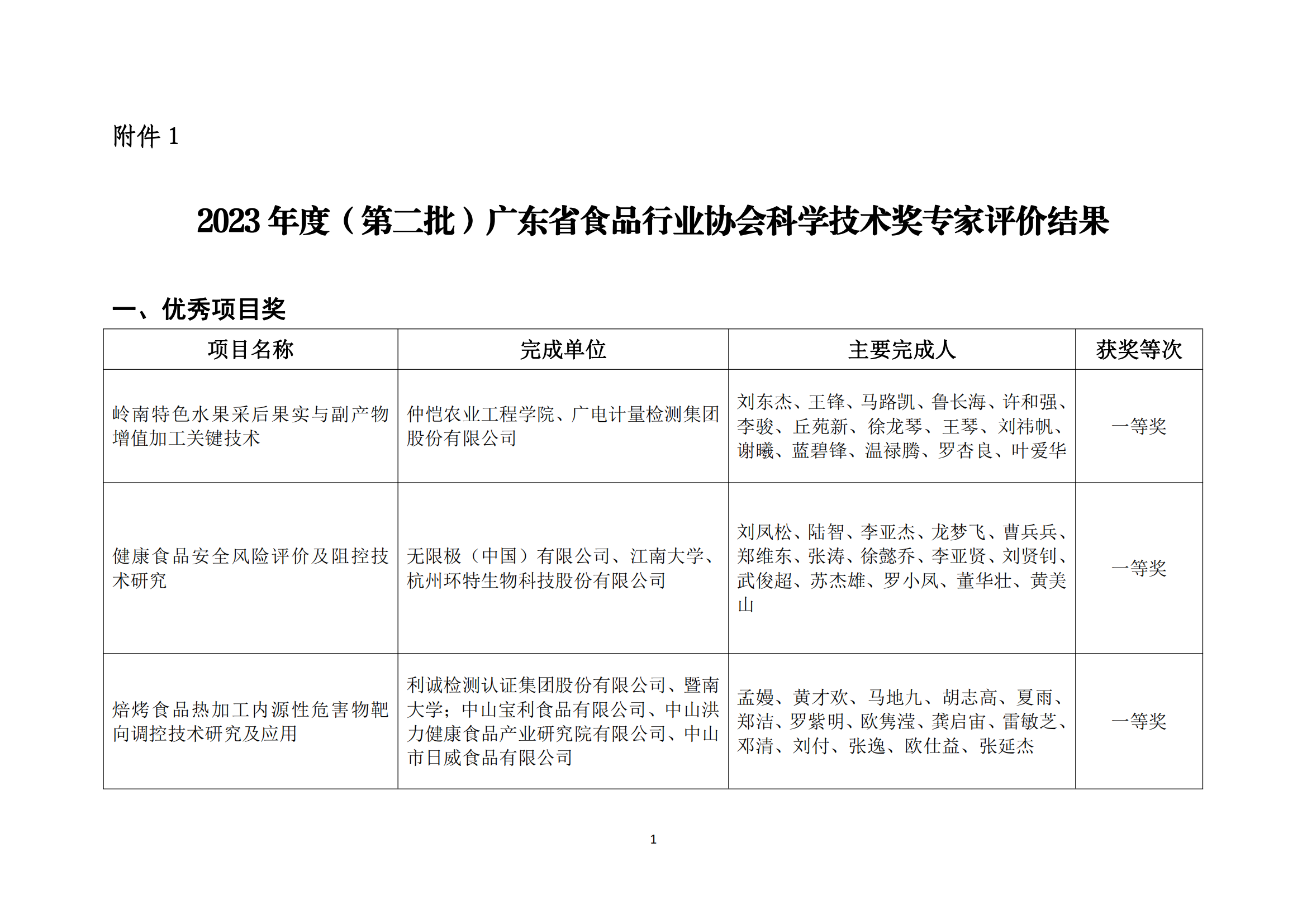 关于2023年度(第二批)广东省食品行业协会科学技术奖和广东省食品行业伟德国际手机1946项目评价结果的公示