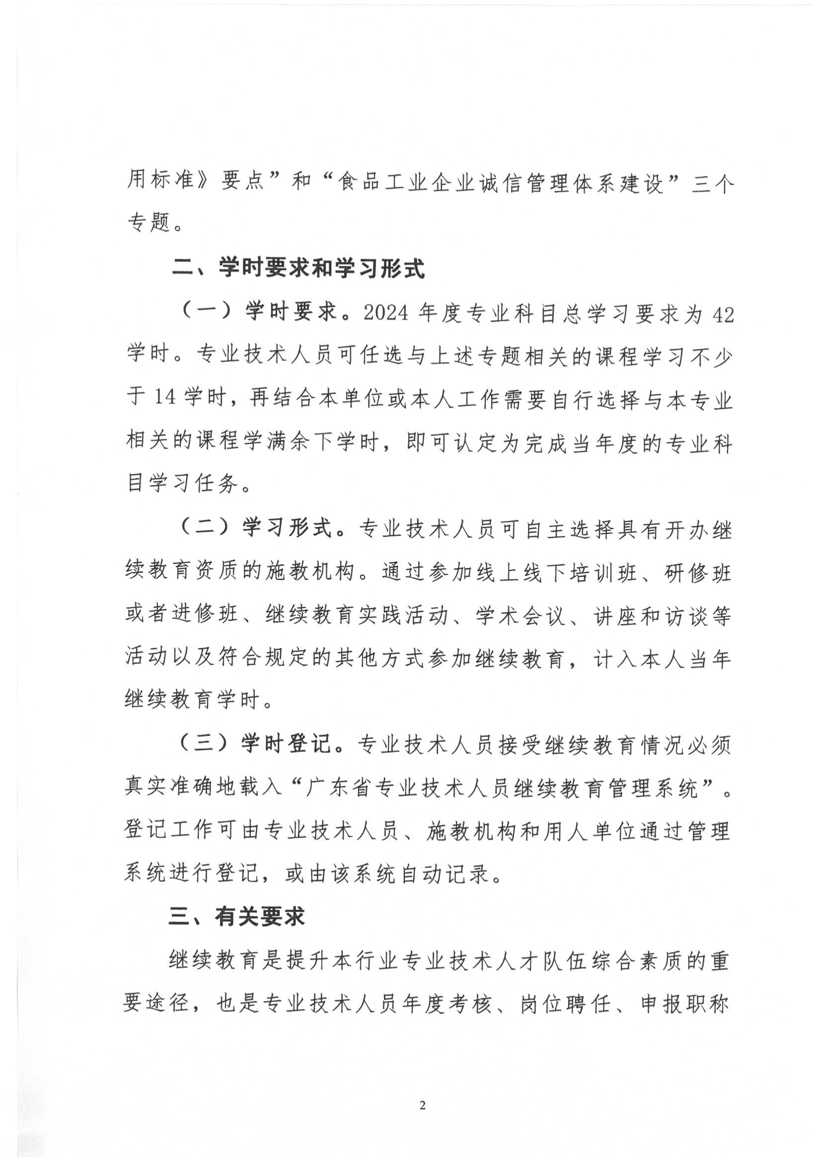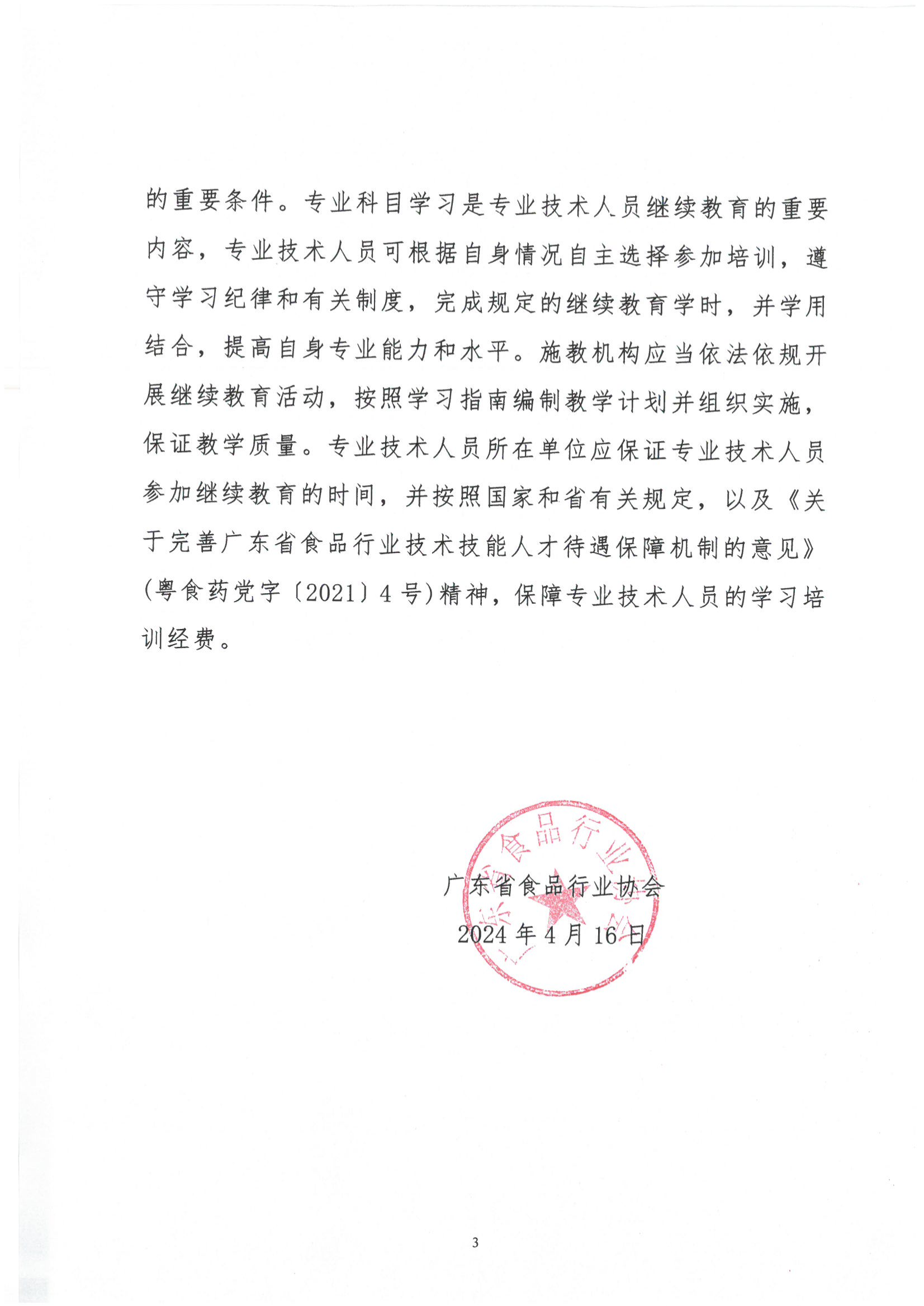 关于发布2024年度广东省食品行业专业技术人员继续教育专业科目学习指南的通知