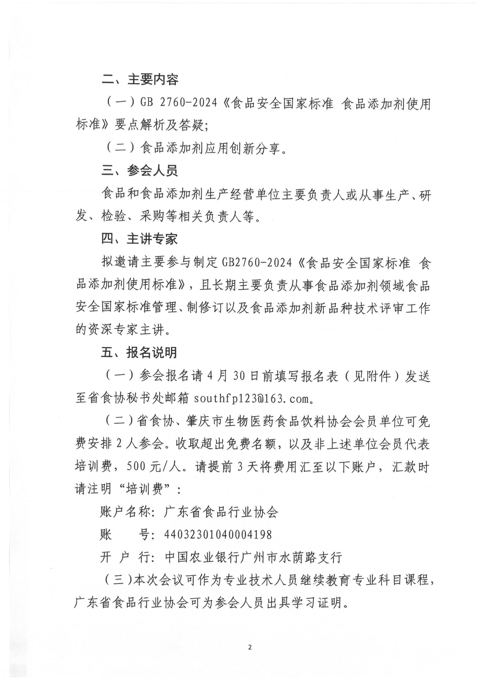 关于举办GB2760-2024《食品安全国家标准 食品添加剂使用标准》要点解析专题培训班的通知